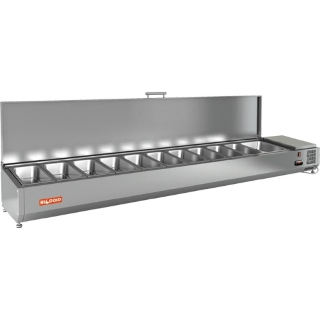 Каталог оборудования Холодильное оборудованиеВитрины для ингредиентовВитрина холодильная для ингредиентов HICOLD VRTU 2360 к PZ4 1(/3) Витрина холодильная для ингредиентов HICOLD VRTU 2360 к PZ4 1(/3) Код товара: 064-671 Поделиться: WhatsAppTelegram СравнитьДобавить в КПВ избранное 0 68 409 ₽ В корзину 0 шт Под заказСамовывоз сегодня бесплатно Взять в кредит Купить в лизинг Получить консультацию в WhatsApp Описание Характеристики Отзывы 0 Инструкции 3 Витрина холодильная для ингредиентов HICOLD VRTU 2360 к PZ4 1(/3) предназначена для охлаждения, кратковременного хранения и демонстрации ингредиентов, салатов и готовых блюд на предприятиях общественного питания и торговли. Устанавливается на холодильные столы для пиццы серии PZ4 благодаря встроенным креплениям в нижней части корпуса. На фото показана аналогичная модель с настольной установкой. Ключевые особенности: Корпус из нержавеющей стали — долговечность и лёгкость ухода. Электронная панель управления — точная настройка температуры. Исполнение U — оснащена крышкой для защиты продуктов. Высота витрины — 279 мм — компактное размещение на рабочей поверхности. Вместимость: 10xGN1/3 + 1xGN1/2 — рациональная организация хранения (гастроёмкости приобретаются отдельно). Совместимые модели столов: PZ4-111/GN HICOLD VRTU 2360 к PZ4 1(/3) — это профессиональная настольная витрина, которая сочетает компактные размеры, современное управление и надежную защиту ингредиентов. Отличный выбор для пиццерий, ресторанов и кафе, где важны удобство доступа, сохранность продуктов и высокая скорость работы.Изображение товара, представленного на фото, может отличаться от его фактического вида. Показать все Габаритные размеры2360×385×279 ммДиапазон рабочей температурыот +2 до +7 °CДлина2360 ммГлубина385 ммВысота279 ммТип крышкиМеталлическая Гастроемкостей11 штТип гастроемкостейGN1/2, GN1/3 Напряжение220 ВТип охлажденияСтатическое Материал изготовленияНержавеющая сталь ХладагентR134 Мощность0,15 кВтВес нетто47 кгВес брутто83 кгТип оттайкиРучная Габариты в упаковке2500×485×379 ммБрендHicold Оставить отзыв Еще никто не оставил отзыв на этот товар Инструкция на HICOLD VRTU 2360 к PZ4.pdfСхема установки на витрину.jpgДекларация о соответствии.pdf Похожие товары Перейти в каталог В наличии 91 697 ₽ Витрина холодильная для ингредиентов TEFCOLD VK38-150 Под заказ Цена по запросу Витрина для ингредиентов Polair VT2-G (1/3) открытого типа С этим товаром покупают В наличии 96 446 ₽ Стол холодильный среднетемпературный Polair ТМ2-G Под заказ 108 783 ₽ Стол морозильный HURAKAN HKN-GN2BT В наличии 38 038 ₽ Льдогенератор Cooleq BF-20 (пальчики) В наличии 83 720 ₽ Шкаф холодильный МХМ Капри 0,7М Ранее просмотрено Под заказ 65 926 ₽ Витрина холодильная для ингредиентов HICOLD VRTU 2280 к PZ3 (1/3)