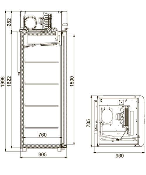 Каталог оборудования Холодильное оборудованиеШкафы холодильныеШкафы морозильные низкотемпературные до -18 °СШкаф морозильный Polair Polair CB107-Gm Alu Шкаф морозильный Polair Polair CB107-Gm Alu Код товара: 062-591 Поделиться: WhatsAppTelegram СравнитьДобавить в КПВ избранное 0 165 920 ₽ В корзину 0 шт Под заказСамовывоз сегодня бесплатно Взять в кредит Купить в лизинг Получить консультацию в WhatsApp Описание Характеристики Отзывы 0 Инструкции 4 Шкаф морозильный Polair Polair CB107-Gm Alu разработан для демонстрации и надежного хранения продуктов на предприятиях общественного питания и торговли. Цельнозаливной корпус выполнен из нержавеющей стали как снаружи, так и внутри (кроме задней стенки), что гарантирует высокую прочность и долговечность конструкции. Алюминиевые профили дверей и верхней панели подчеркивают современный и премиальный внешний вид шкафа. Оборудование рассчитано на работу при температуре окружающей среды до +40 °С и относительной влажности воздуха до 80%, что делает его надежным решением даже в сложных условиях эксплуатации. Основные особенности: Многофункциональная контрольная панель с жидкокристаллическим дисплеем Верхнее расположение агрегата, обеспечивающее удобный доступ к внутреннему объему Поддержка дистанционного мониторинга и записи данных в журнал контроллера (при использовании сетевой карты), а также передача данных через Bluetooth Клапан Шредера и компенсационный клапан с ПЭНом обогрева ПЭН обогрева трубки слива конденсата и ПЭН обогрева дверного проема для предотвращения образования наледи Распашные двери с полностью интегрированными ручками и эластичными магнитными уплотнителями, обеспечивающими максимальную герметизацию Микропереключатель, отключающий вентилятор и включающий подсветку при открытии дверей Встроенная внутренняя подсветка, улучшающая обзор содержимого Регулируемые по высоте ножки и педаль для удобного открывания двери Замок для обеспечения безопасности хранения 4 полки формата GN 2/1 (530×650 мм) с допустимой нагрузкой до 40 кг Толщина теплоизоляции корпуса — 61 мм Изображение товара, представленного на фото, может отличаться от его фактического вида. Показать все Габаритные размеры735×945×1996 ммДиапазон рабочей температурыдо -18 °CДлина735 ммГлубина450 ммВысота1996 ммОбъём700 лМатериал корпусаНержавеющая сталь Тип охлажденияДинамическое Тип управленияМеханическое Расход электроэнергии в сутки12 кВтКоличество полок2 штКоличество дверей1 штЗамокЕсть Тип двериМеталлическая Способ открыванияРаздвижные (купе) Напряжение220 ВХладагентR290 Расположение агрегатаНижнее Габариты в упаковке850×988×2160 ммВес нетто128 кгВес брутто152 кгБрендPolairВсе шкафы морозильные низкотемпературные до -18 °С POLAIRВсе шкафы морозильные низкотемпературные до -18 °С 4 уровня Оставить отзыв Еще никто не оставил отзыв на этот товар Схема POLAIR CB107-Gm Alu.jpgИнструкция на POLAIR CB107-Gm Alu.pdfДекларация о соответствии.pdfСертификат соответствия.pdf Похожие товары Перейти в каталог Под заказ 143 201 ₽ Шкаф морозильный МХМ Капри 1,12НВ Под заказ 123 026 ₽ Шкаф морозильный Abat ШХн-0,5 В наличии 125 781 ₽ Шкаф холодильный низкотемпературный Arkto F0.5-G Под заказ 125 177 ₽ Шкаф морозильный МХМ Капри 0,5НСК дверь стеклянная сверху, металл снизу Под заказ 136 272 ₽ Шкаф морозильный Abat ШХн-0,7 Под заказ 152 169 ₽ Шкаф морозильный Abat ШХн-0,7-01 нерж. Под заказ 139 830 ₽ Шкаф морозильный Ангара 1000 М В наличии 214 659 ₽ Ш