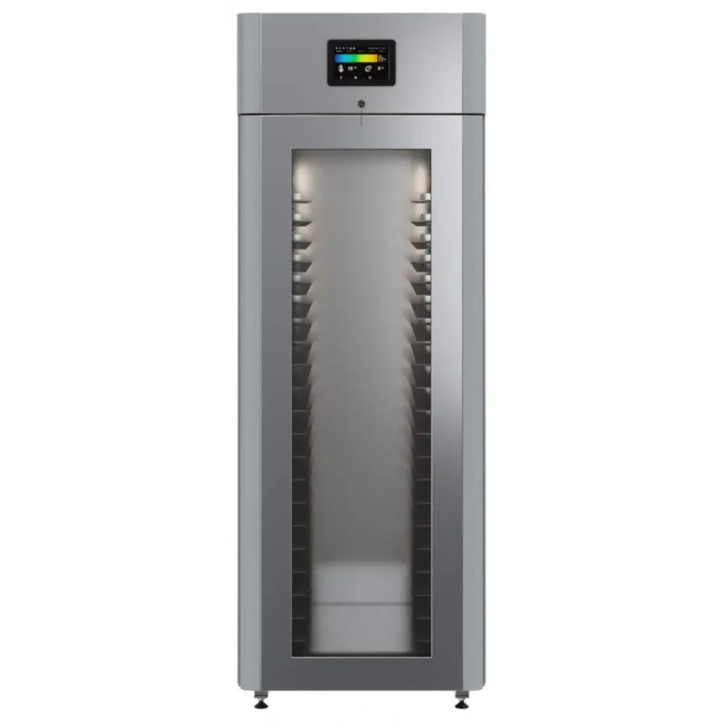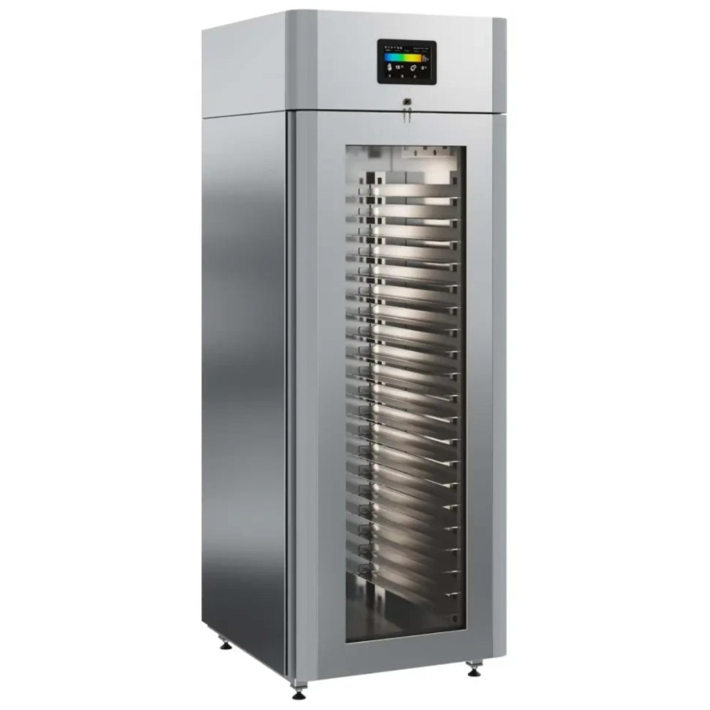 Каталог оборудования Холодильное оборудованиеШкафы холодильныеСпециализированные холодильные шкафыШкаф холодильный для хлебопекарных производств Polair CS107-Bakery Br со стеклом (Тип 2) Шкаф холодильный для хлебопекарных производств Polair CS107-Bakery Br со стеклом (Тип 2) Код товара: 062-623 Поделиться: WhatsAppTelegram СравнитьДобавить в КПВ избранное 0 419 900 ₽ В корзину 0 шт Под заказСамовывоз сегодня бесплатно Взять в кредит Купить в лизинг Получить консультацию в WhatsApp Описание Характеристики Отзывы 0 Инструкции 5 Шкаф холодильный для хлебопекарных производств Polair CS107-Bakery Br со стеклом (Тип 2) предназначен для создания оптимальных условий хранения и расстойки заготовок из теста на предприятиях общественного питания и торговли. Корпус цельнозаливной, выполнен из нержавеющей стали, дверь — стеклопакет. Оборудование стабильно работает при температуре окружающей среды до +40 °C. В комплект входят 20 пар направляющих размером 400×600 мм. Особенности: Многофункциональные режимы: охлаждение тестовых заготовок, замедление ферментации, хранение, регенерация, брожение и расстойка Динамическое охлаждение с мягким обдувом без заветривания и автоматическая оттайка с системой испарения конденсата Панель управления с 7" дисплеем: контроль температуры, влажности (регулируется от 60 до 95 %), скорости вентилятора и времени, возможность создания и сохранения собственных программ Встроенный ультразвуковой увлажнитель (требуется подключение к системе водоочистки и канализации) Эргономичная конструкция: верхнее расположение агрегата, распашная дверь со стеклопакетом и механизмом самозакрывания, педаль для удобного открытия, съёмные направляющие и легко заменяемый уплотнитель с магнитной вставкой Простота ухода: штампованное углубление в дне корпуса для сбора загрязнений Экологичный хладагент R290 Энергоэффективность: потребляемая мощность — 0,55 кВт (охлаждение), 0,9 кВт (нагрев) Толщина стенки корпуса — 43 мм Polair CS107-Bakery Br со стеклом (Тип 2) — современный шкаф отложенной расстойки, обеспечивающий полный контроль и гибкость при работе с тестовыми заготовками. Благодаря многофункциональным режимам, точной настройке параметров и продуманной конструкции, он становится надёжным решением для пекарен и кондитерских, стремящихся к высокому качеству продукции и удобству в эксплуатации.Изображение товара, представленного на фото, может отличаться от его фактического вида. Показать все Габаритные размеры697×1005×1960 ммДиапазон рабочей температурыот -10 до +40 °CДлина697 ммШирина1005 ммВысота1960 ммОбъём700 лКол-во дверей1 Тип двериСтеклянная Уровень влажностиот 60 до 95 %Направляющие под EN 40*6020 Расстояние между направляющими60 ммХолодильный агрегатВстроенный Тип оттайкиАвтоматическая Тип охлажденияДинамический ПодсветкаЕсть ХладагентR290 Вес нетто180 кгВес брутто205 кгБрендPolairВсе специализированные холодильные шкафы Из нержавейки Оставить отзыв Еще никто не оставил отзыв на этот товар Схема POLAIR CS107 Bakery Br.jpgИнструкция на POLAIR CS107 Bakery Br.pdfБрошюра на хлебопекарное оборудование POLAIR.pdfДекларация о соответствии.pdfСертификат соответствия.pdf Похожие товары Перейти в каталог В наличии 186 231 ₽ Шкаф холодильный HURAKAN HKN-MA230 для созревания мяса Под заказ 392 700 ₽ Шкаф холодильный для вызревания мяса Polair CS107 Meat черный, со стеклом (Тип 2) Под заказ 399 500 ₽ Шкаф холодильный для вызревания мяса Polair CS107 Meat со 