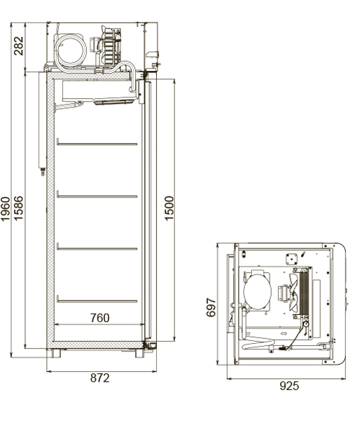 Каталог оборудования Холодильное оборудованиеШкафы холодильныеШкафы холодильные универсальные от -5 до +5 °СШкаф холодильный универсальный Polair CV107-Sm Alu Шкаф холодильный универсальный Polair CV107-Sm Alu Код товара: 062-611 Поделиться: WhatsAppTelegram СравнитьДобавить в КПВ избранное 0 129 370 ₽ В корзину 0 шт Под заказСамовывоз сегодня бесплатно Взять в кредит Купить в лизинг Получить консультацию в WhatsApp Описание Характеристики Отзывы 0 Инструкции 4 Шкаф холодильный универсальный Polair CV107-Sm Alu предназначен для демонстрации и надежного хранения продуктов на предприятиях общественного питания и торговли. Цельнозаливной корпус выполнен из стали с полимерным покрытием и оснащен алюминиевыми профилями, что обеспечивает высокую прочность конструкции и долговечность, а также подчеркивает современный премиальный дизайн. Шкаф работает при температуре окружающей среды до 40 °С и влажности воздуха до 80%. Особенности модели: Контрольная панель с быстрым доступом к настройкам, удобным возвратом в предыдущее меню и возможностью полного отключения без отдельной кнопки. Жидкокристаллический дисплей для наглядного отображения параметров. Клапан Шредера для обслуживания холодильной системы. Компенсационный клапан с ПЭНом обогрева, ПЭНы обогрева трубки слива конденсата и дверного проема — предотвращают образование льда и обеспечивают надежную работу. Распашной тип двери с возможностью изменения стороны открывания, что делает установку более гибкой. Полностью интегрированные ручки, удобные и стильные. Эластичные уплотнители с магнитными вставками для максимальной герметизации. Внутренняя подсветка вынесена на нижнюю часть фронтальной панели. Микропереключатель для автоматического отключения вентилятора и включения подсветки при открытии дверей. Регулируемые по высоте ножки для устойчивости на любом полу. Педаль для удобного открывания без рук. Замок для защиты содержимого. Высокая допустимая нагрузка на полку — до 40 кг. Размер полки: GN 2/1 (530×650 мм). Толщина стенки корпуса — 43 мм, что обеспечивает отличную теплоизоляцию. Polair CV107-Sm Alu — это функциональный и надежный холодильный шкаф с современным дизайном, который обеспечивает максимальную сохранность и удобный доступ к продуктам. Отлично подходит для ресторанов, кафе и магазинов, где важны надежность, стиль и энергоэффективность.Изображение товара, представленного на фото, может отличаться от его фактического вида. Показать все Габаритные размеры697×925×1960 ммДиапазон рабочей температурыот -5 до +5 °CДлина697 ммГлубина925 ммВысота1960 ммОбъём700 лРазмер полки530×650 ммКоличество полок4 штКоличество дверей1 штТип оттайкиАвтоматическая Тип охлажденияДинамическое Тип управленияЭлектронное Материал корпусаНержавеющая сталь Тип двериМеталлическая ЗамокЕсть Способ открыванияРаспашные ХладагентR290 Холодильный агрегатВстроенный Расположение агрегатаВерхнее Потребление электроэнергии в сутки4,5 кВтПотребляемая мощность0,4 кВтНапряжение220 ВГабариты в упаковке800×1000×2150 ммВес нетто113 кгВес брутто138 кгБрендPolairВсе шкафы холодильные универсальные от -5 до +5 °С Из нержавейки Оставить отзыв Еще никто не оставил отзыв на этот товар Схема POLAIR CV107-Sm.jpgИнструкция на POLAIR CV107-Sm.pdfДекларация о соответствии.pdfСертификат соответствия.pdf Похожие товары Перейти в каталог Под заказ 125 793 ₽ Шкаф холодильный универсальный Arkto 