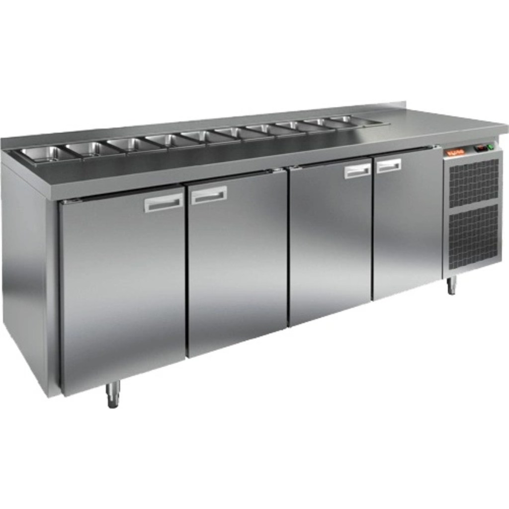 Каталог оборудования Холодильное оборудованиеСтолы охлаждаемыеСтолы холодильные для салатовСтол холодильный для салатов HiCold SL1-1111GN (1/3) без крышки Стол холодильный для салатов HiCold SL1-1111GN (1/3) без крышки Код товара: 064-512 Поделиться: WhatsAppTelegram СравнитьДобавить в КПВ избранное 0 192 411 ₽ В корзину 0 шт Под заказСамовывоз сегодня бесплатно Взять в кредит Купить в лизинг Получить консультацию в WhatsApp Описание Характеристики Отзывы 0 Инструкции 2 Стол холодильный для салатов HiCold SL1-1111GN (1/3) без крышки предназначен для предприятий общественного питания и торговли. Он обеспечивает хранение и подготовку ингредиентов для пиццы, салатов и других блюд, а также охлаждение и кратковременное хранение скоропортящихся продуктов. Модель сочетает рабочую поверхность и холодильный объем, позволяя повару иметь все необходимые компоненты под рукой. Корпус и столешница выполнены из нержавеющей стали, обеспечивая надежность и долговечность. Особенности: Динамическая система охлаждения — равномерное распределение температуры внутри холодильного объема. Автоматическая оттайка — упрощает уход за оборудованием. Электронная панель управления — точная настройка температуры и режимов работы. 4 вместительные внутренние полки формата GN 1/1 — удобное хранение ингредиентов. Автоматические доводчики дверей с фиксатором открытого положения — комфорт и безопасность работы. Легкозаменяемые магнитные уплотнители — простота обслуживания. Открытая агрегатная часть — облегчает доступ для обслуживания. Регулируемые по высоте ножки — адаптация к рабочей поверхности. Столешница с бортом, толщина столешницы и теплоизоляции 50 мм — надежная защита и удобство работы. Размер полки: 530×325 мм (GN 1/1) Максимальная глубина гастроемкостей: 100 мм HiCold SL1-1111GN (1/3) без крышки — многофункциональный и надежный стол для профессиональной кухни. Обеспечивает удобство работы, эффективное охлаждение и безопасное хранение продуктов. Идеально подходит для ресторанов, кафе и пиццерий, где важны скорость работы и качество хранения ингредиентов.Изображение товара, представленного на фото, может отличаться от его фактического вида. Показать все Габаритные размеры2280×700×850 ммДиапазон рабочей температурыот +2 до +10 °CРасположение агрегатаБоковое Материал столешницыНержавеющая Тип столаС дверьми Тип двериГлухая Объём660 лКоличество дверей4 штТип гастроемкостейGN 1/3 Размер полки530×325 ммНапряжение220 ВМощность0,48 кВтТип охлажденияДинамический Тип оттайкиАвтоматическая СтолешницаС бортом Вес нетто145 кгВес брутто211 кгБрендHicold Оставить отзыв Еще никто не оставил отзыв на этот товар Паспорт на HICOLD SL1-1111GN.pdfДекларация о соответствии.pdf Ранее просмотрено Под заказ 182 242 ₽ Стол холодильный для салатов HiCold SLE3-111GN полипропилен, с крышкой Под заказ 197 722 ₽ Стол холодильный для салатов HiCold SL2-1111GN (1/6) О с крышкой Под заказ 163 612 ₽ Стол холодильный для салатов HiCold SL1-111GN (1/3) О без крышки