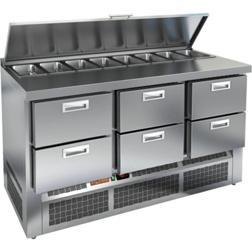 Каталог оборудования Холодильное оборудованиеСтолы охлаждаемыеСтолы холодильные для салатовСтол холодильный для салатов HiCold SLE1-222GN (1/3) с крышкой Стол холодильный для салатов HiCold SLE1-222GN (1/3) с крышкой Код товара: 064-905 Поделиться: WhatsAppTelegram СравнитьДобавить в КПВ избранное 0 239 391 ₽ В корзину 0 шт В наличии на 1 складеДоступно для заказа 1 шт.Наличие на складахМоскваМО, Бритово, Раменский гор. округ, Складской комплекс ССТ, корп. 2, секция 2В наличии 1 шт.Самовывоз сегодня бесплатно Расчет стоимости доставкиОткудаМоскваКудаМоскваСанкт-ПетербургАстраханьБарнаулБелгородБрянскВладивостокВолгоградВоронежЕкатеринбургИвановоИжевскИркутскКазаньКалининградКемеровоКировКраснодарКрасноярскКурскЛипецкМагнитогорскМахачкалаНабережные ЧелныНижний НовгородНижний ТагилНовокузнецкНовосибирскОмскОренбургПензаПермьПятигорскРостов-на-ДонуРязаньСамараСаратовСимферопольСтавропольТверьТольяттиТомскТулаТюменьУлан-УдэУльяновскУфаХабаровскЧебоксарыЧелябинскЯрославльРассчитатьРасчет стоимости доставки указан приблизительный, более точный расчет Вам может осуществить сотрудник транспортной компании. Взять в кредит Купить в лизинг Получить консультацию в WhatsApp Описание Характеристики Отзывы 0 Стол холодильный для салатов HiCold SLE1-222GN (1/3) с крышкой предназначен для использования на предприятиях общественного питания и торговли. Он служит для хранения и обработки ингредиентов, используемых при приготовлении салатов, пиццы, закусок и других блюд. Также стол подходит для охлаждения и кратковременного хранения скоропортящихся продуктов и напитков. Модель сочетает в себе прочную рабочую поверхность и охлаждаемый внутренний объем, что упрощает процесс приготовления: все необходимые ингредиенты всегда под рукой. Корпус и столешница изготовлены из нержавеющей стали, устойчивой к воздействию влаги, механическим повреждениям и легко поддающейся очистке. Металлическая крышка защищает продукты от загрязнений и сохраняет их свежесть. Особенности: Электронная панель управления — обеспечивает точное и удобное регулирование температуры внутри камеры. 6 выдвижных ящиков — позволяют удобно распределить ингредиенты и оптимально организовать пространство для хранения продуктов. Салат-бар вмещает 8 гастроемкостей — обеспечивает быстрый доступ к разнообразным ингредиентам. Автоматические доводчики дверей с фиксатором — улучшают эргономику и предотвращают случайное захлопывание. Магнитные уплотнители — легко заменяются и обеспечивают хорошую теплоизоляцию. Открытая агрегатная часть — облегчает доступ к элементам системы охлаждения для технического обслуживания. Регулируемые ножки — позволяют установить стол на неровной поверхности. Максимальная глубина гастроемкостей — 100 мм — подходит для хранения различных типов продуктов. Толщина столешницы — 50 мм — обеспечивает надежность и устойчивость при работе. Высота борта — 50 мм — защищает от проливания и загрязнений. Теплоизоляция толщиной 50 мм — способствует поддержанию стабильной температуры и экономии энергии. HiCold SLE1-222GN (1/3) с крышкой — это практичное и многофункциональное решение для профессиональной кухни. Благодаря вместительности, продуманной конструкции и надежной термоизоляции, стол позволяет организовать эффективное рабочее пространство и обеспечивает 