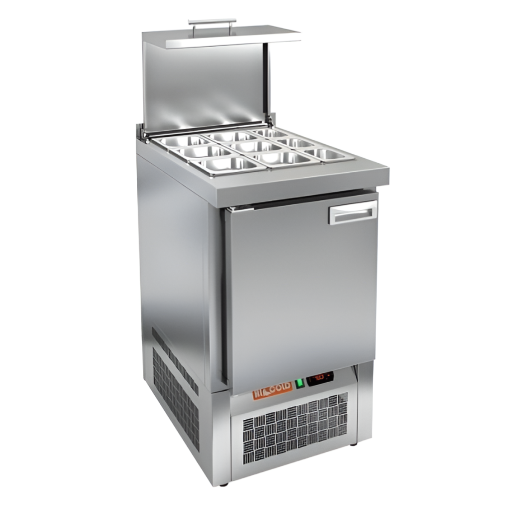 Каталог оборудования Холодильное оборудованиеСтолы охлаждаемыеСтолы холодильные для салатовСтол холодильный для салатов HiCold SLE3-1GN с крышкой Стол холодильный для салатов HiCold SLE3-1GN с крышкой Код товара: 064-942 Поделиться: WhatsAppTelegram СравнитьДобавить в КПВ избранное 0 100 432 ₽ В корзину 0 шт Под заказСамовывоз сегодня бесплатно Взять в кредит Купить в лизинг Получить консультацию в WhatsApp Описание Характеристики Отзывы 0 Инструкции 2 Стол холодильный для салатов HiCold SLE3-1GN с крышкой предназначен для охлаждения и кратковременного хранения ингредиентов, используемых при приготовлении салатов, закусок, сэндвичей и других блюд. Он широко применяется на предприятиях общественного питания и торговли. Модель объединяет в себе рабочую поверхность и охлаждаемый отсек, обеспечивая удобство, экономию места и быстрое взаимодействие с ингредиентами в процессе приготовления. Корпус и столешница изготовлены из нержавеющей стали, что гарантирует долговечность конструкции, устойчивость к коррозии и соответствие санитарным нормам. Металлическая крышка защищает продукты от загрязнений и сохраняет их свежесть. Особенности модели: Электронная панель управления — для точной настройки температуры Вместительная внутренняя полка формата GN 1/1 — для хранения различных продуктов Вместимость салат-бара: 6 гастроемкостей GN 1/6 и 3 GN 1/9 Поддержка гастроемкостей глубиной до 100 мм Автоматические доводчики дверей с фиксацией открытого положения Легкозаменяемые магнитные уплотнители — поддерживают герметичность Открытая агрегатная часть — упрощает техническое обслуживание Регулируемые по высоте ножки — для устойчивой установки Столешница толщиной 50 мм Борт высотой 50 мм Эффективная теплоизоляция — 50 мм HiCold SLE3-1GN с крышкой — компактный и функциональный салатный стол, который сочетает охлаждение и удобное рабочее пространство. Подходит для профессиональных кухонь, обеспечивая быстрый доступ к ингредиентам и оптимальные условия их хранения.Изображение товара, представленного на фото, может отличаться от его фактического вида. Показать все Габаритные размеры565×700×850 ммДиапазон рабочей температурыот +2 до +10 °CРасположение агрегатаНижнее Материал столешницыНержавеющая Тип столаС дверьми Тип двериГлухая Объём110 лКоличество дверей1 штТип гастроемкостейGN 1/9, GN 1/6 Размер полки530×325 ммНапряжение220 ВМощность0,15 кВтТип охлажденияДинамическое Тип оттайкиАвтоматическая СтолешницаС бортом Вес нетто58 кгВес брутто95 кгБрендHicold Оставить отзыв Еще никто не оставил отзыв на этот товар Паспорт на HICOLD SLE3-1GN.pdfДекларация о соответствии.pdf Ранее просмотрено Под заказ 13 768 ₽ Ванна моечная МХМ М-1-0,3-0,53/1,01 (AISI 430, t=0,6) Под заказ 15 334 ₽ Ванна моечная МХМ М-1-0,4-0,63/1,21 (AISI 430, t=0,6)