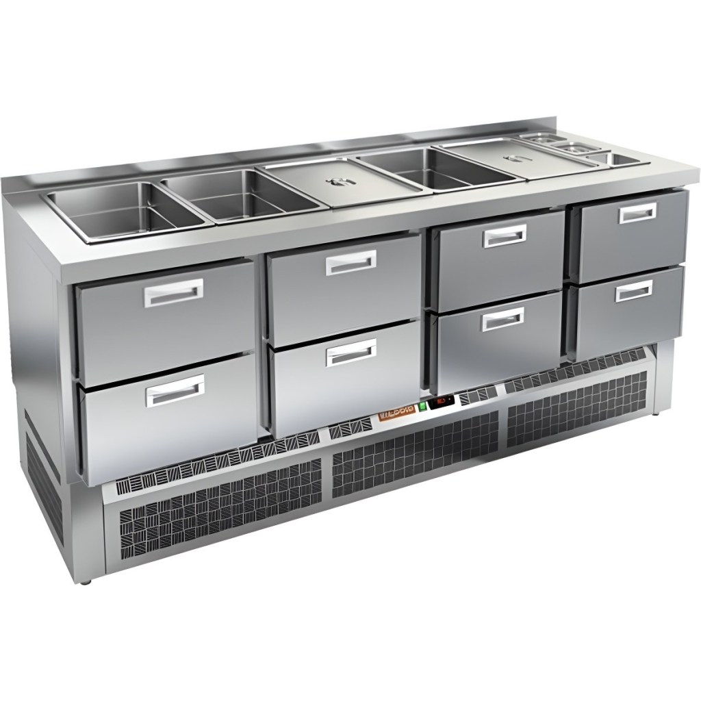 HiCold SLE3-2222GN М без крышки — это надёжный и практичный салатный стол, который сочетает в себе охлаждаемый отсек и удобную рабочую зону. Модель идеально подходит для интенсивной эксплуатации в профессиональных кухнях, обеспечивая быстрое обслуживание и надёжное хранение ингредиентов.