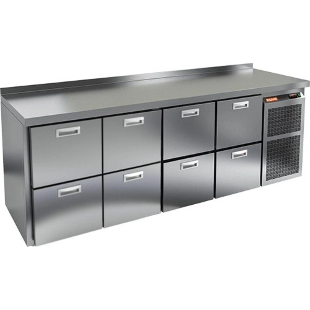 Каталог оборудования Холодильное оборудованиеСтолы охлаждаемыеСтолы холодильные среднетемпературныеСтол холодильный среднетемпературный HiCold GN 2222 BR2 TN Стол холодильный среднетемпературный HiCold GN 2222 BR2 TN Код товара: 065-429 Поделиться: WhatsAppTelegram СравнитьДобавить в КПВ избранное 0 306 531 ₽ В корзину 0 шт Под заказСамовывоз сегодня бесплатно Взять в кредит Купить в лизинг Получить консультацию в Max Описание Характеристики Отзывы 0 Стол холодильный среднетемпературный HiCold GN 2222 BR2 TN — это профессиональное оборудование, предназначенное для кратковременного хранения скоропортящихся продуктов и напитков, а также удобной подготовки ингредиентов на предприятиях общественного питания и торговли. Модель сочетает функциональность, надежность и эргономичный дизайн. Ключевые особенности: 8 выдвижных ящиков обеспечивают удобный доступ к продуктам и рациональную организацию пространства. Электронная панель управления позволяет просто и точно регулировать температуру. Автоматические доводчики обеспечивают мягкое и плотное закрывание ящиков. Легкозаменяемые магнитные уплотнители гарантируют надежную герметичность. Регулируемые по высоте ножки позволяют адаптировать стол к любому рабочему пространству. Корпус и столешница из нержавеющей стали обеспечивают долговечность, устойчивость к коррозии и простоту в уходе. Толщина теплоизоляции, столешницы и борта — 50 мм, что гарантирует оптимальное сохранение температуры и жесткость конструкции. Рабочий температурный режим сохраняется при температуре окружающей среды от +12 до +37 °C. HiCold GN 2222 BR2 TN — это многофункциональный холодильный стол, идеально подходящий для профессиональной кухни. Конструкция позволяет удобно распределять ингредиенты, а эргономичные выдвижные модули обеспечивают быстрый доступ к продуктам. Высокое качество материалов, надежные комплектующие и простота эксплуатации делают этот стол незаменимым помощником в условиях интенсивной ежедневной работы.Изображение товара, представленного на фото, может отличаться от его фактического вида. Показать все Габаритные размеры2395×700×850 ммДиапазон рабочей температурыот -2 до +10 °CРасположение агрегатаБоковое Материал столешницыНержавеющая Тип столаС ящиками Объём775 лКоличество ящиков8 штНапряжение220 ВМощность0,48 кВтТип охлажденияДинамический Тип оттайкиАвтоматическая СтолешницаС бортом Габариты в упаковке2420×850×1000 ммВес нетто150 кгВес брутто190 кгБрендHicoldВсе холодильные столы HicoldВсе нержавеющие холодильные столы Все холодильные столы с бортом Оставить отзыв Еще никто не оставил отзыв на этот товар Похожие товары Перейти в каталог Под заказ 148 851 ₽ Стол холодильный среднетемпературный HiCold SN 1111/TN W В наличии 119 067 ₽ Стол холодильный среднетемпературный Polair TM4GN-GС С этим товаром покупают В наличии 181 658 ₽ Шкаф холодильный универсальный Polair CV 114-G В наличии 9 838 ₽ Индукционная плита HURAKAN HKN-ICW35ML WOK Ранее просмотрено В наличии 230 301 ₽ Стол холодильный среднетемпературный HiCold GN 11112 BR2 TN В наличии 260 901 ₽ Стол холодильный среднетемпературный HiCold GN 11122 BR2 TN НовинкаВ наличии 211 864 ₽ Стол холодильный среднетемпературный Polair TM3-222-G