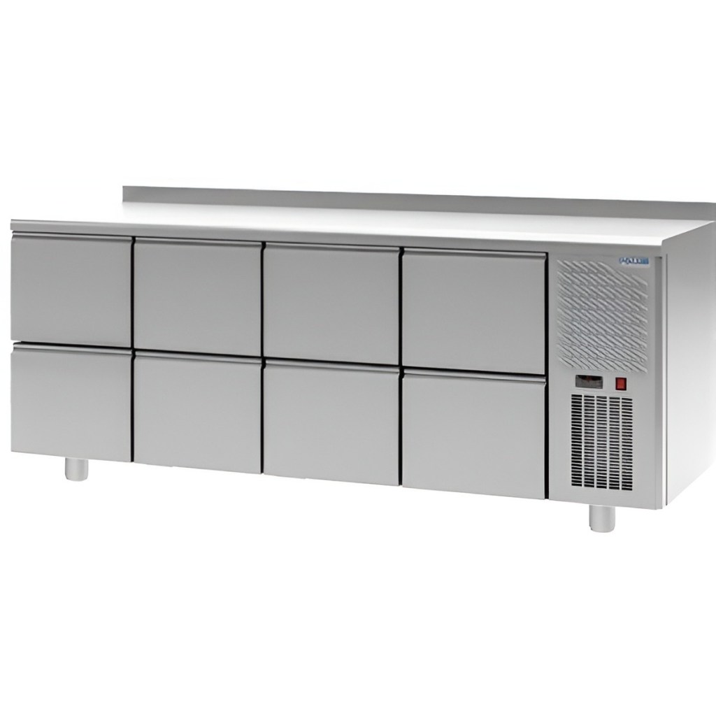 Каталог оборудования Холодильное оборудованиеСтолы охлаждаемыеСтолы морозильные низкотемпературныеСтол морозильный низкотемпературный Polair TB4GN-2222-G Стол морозильный низкотемпературный Polair TB4GN-2222-G Код товара: 062-495 Поделиться: WhatsAppTelegram СравнитьДобавить в КПВ избранное 0 301 395 ₽ В корзину 0 шт Под заказСамовывоз сегодня бесплатно Взять в кредит Купить в лизинг Получить консультацию в WhatsApp Описание Характеристики Отзывы 0 Стол морозильный низкотемпературный Polair TB4GN-2222-G предназначен для хранения продуктов и обработки ингредиентов на рабочей поверхности на предприятиях общественного питания и торговли. Цельнозаливные корпус и двери выполнены из стали, что обеспечивает высокую механическую прочность, надежную термоизоляцию, герметичность и долговечность конструкции. Оборудование рассчитано на работу при температуре окружающей среды до 32 °С и относительной влажности воздуха до 60%. Особенности: Автоматическая оттайка испарителя с помощью ТЭНов и система испарения конденсата. Динамическое охлаждение обеспечивает равномерное распределение температуры. Электронный терморегулятор для точного поддержания температурного режима. Двухъярусный агрегат, полностью выдвигаемый для удобного обслуживания. Все элементы холодильной системы вынесены за пределы охлаждаемого пространства, что увеличивает полезный объем. Экологичный хладагент R290. ПЭН обогрева дверного проема предотвращает образование наледи. ТЭН поддона воздухоохладителя защищает от замерзания конденсата. Класс защиты IP24, защита от попадания влаги. Регулируемые по высоте ножки для устойчивой установки на неровных поверхностях. Толщина столешницы — 40 мм, стенок корпуса — 43 мм. Высота борта — 60 мм предотвращает стекание жидкости. Тип полок: Gastronorm GN 1/1, стандарт для профессиональных кухонь. Polair TB4GN-2222-G — надежный и удобный морозильный стол для профессиональных кухонь, который обеспечивает удобную обработку ингредиентов и надежное хранение замороженных продуктов при стабильной температуре.Изображение товара, представленного на фото, может отличаться от его фактического вида. Показать все Габаритные размеры2060×705×910 ммДиапазон рабочей температурыдо -18 °CРасположение агрегатаБоковое Материал столешницыНержавеющая Тип столаС ящиками Объём600 лТип гастроемкостейGN 1/1 Количество ящиков8 штНапряжение220 ВМощность0,6 кВтТип охлажденияДинамическое Тип оттайкиАвтоматическая ХладагентR290 СтолешницаС бортом Вес нетто165 кгВес брутто195 кгБрендPolairВсе морозильные столы PolairВсе морозильные столы с бортом Оставить отзыв Еще никто не оставил отзыв на этот товар Ранее просмотрено АкцияПод заказ 83 470 ₽ Моноблок холодильный низкотемпературный Арктика ММH 106 (с зимним комплектом) Пульт в комплектеПод заказ 348 415 ₽ Сплит-система холодильная среднетемпературная Арктика СМС 450 (с зимним комплектом) Под заказ 122 586 ₽ Откатная холодильная дверь Север НТ-ОХД 1600*2500/80 Под заказ 95 032 ₽ Витрина холодильная настольная HICOLD VRL Т 900 L Black АкцияПод заказ 66 980 ₽ Сплит-система холодильная среднетемпературная Арктика СМС 106 (с зимним комплектом) Под заказ 131 327 ₽ Откатная холодильная дверь Север НТ-ОХД 1200*3000/120