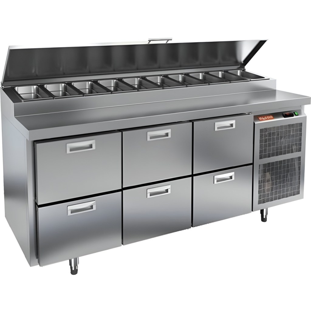 Стол холодильный HiCold PZ1-222GN (1/3H) — надёжный и функциональный холодильный стол для пиццы и салатов. Полное отсутствие дверцы и продуманная система хранения обеспечивают быстрый доступ к ингредиентам, удобство эксплуатации и высокую производительность на профессиональной кухне.