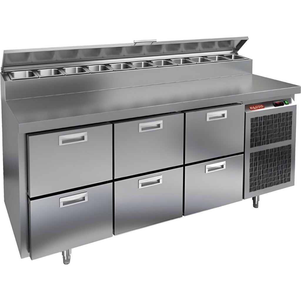 Каталог оборудования Холодильное оборудованиеСтолы охлаждаемыеСтолы холодильные для пиццыСтол холодильный для пиццы HiCold PZ2-222GN (1/6) Стол холодильный для пиццы HiCold PZ2-222GN (1/6) Код товара: 064-774 Поделиться: WhatsAppTelegram СравнитьДобавить в КПВ избранное 0 306 171 ₽ В корзину 0 шт Под заказСамовывоз сегодня бесплатно Взять в кредит Купить в лизинг Получить консультацию в WhatsApp Описание Характеристики Отзывы 0 Стол холодильный для пиццы HiCold PZ2-222GN (1/6) предназначен для кухонь и предприятий общественного питания. Он используется для раскатки теста, подготовки ингредиентов для пиццы, салатов и других блюд, а также для охлаждения и кратковременного хранения скоропортящихся продуктов. Модель совмещает нержавеющую рабочую поверхность и охлаждаемый отсек с 6 выдвижными ящиками, обеспечивая удобный доступ к ингредиентам и эффективное хранение без дверей. Особенности: Динамическая система охлаждения для равномерного поддержания температуры Автоматическая оттайка для удобного обслуживания Электронная панель управления для точной настройки параметров Вместительная внутренняя полка формата GN 1/1 (размер 530×325 мм) 6 выдвижных ящиков для хранения ингредиентов Легкозаменяемые магнитные уплотнители для герметичности Открытая агрегатная часть для легкого доступа к компонентам Регулируемые по высоте ножки для устойчивости Нержавеющая столешница глубиной 486 мм и толщиной 50 мм — устойчива к коррозии, легко моется и гигиенична Толщина теплоизоляции: 50 мм Максимальная глубина гастроемкостей: 100 мм Вместимость салат-бара: 11 гастроемкости Стол холодильный HiCold PZ2-222GN (1/6) — это надежное и удобное решение для профессиональной кухни. Он обеспечивает легкий доступ к ингредиентам, упрощает хранение и подготовку продуктов и полностью соответствует стандартам предприятий общественного питания.Изображение товара, представленного на фото, может отличаться от его фактического вида. Показать все Габаритные размеры1835×700×1000 ммДиапазон рабочей температурыот +2 до +10 °CРасположение агрегатаБоковое Материал столешницыНержавеющая Тип столаС ящиками Объём505 лТип гастроемкостейGN 1/6 Количество ящиков6 штНапряжение220 ВМощность0,5 кВтТип охлажденияДинамическое Тип оттайкиАвтоматическая Габариты в упаковке2000×850×1140 ммВес нетто172 кгВес брутто210 кгБрендHicoldВсе холодильные столы для пиццы HicoldВсе нержавеющие холодильные столы для пиццы Оставить отзыв Еще никто не оставил отзыв на этот товар Ранее просмотрено Под заказ 158 391 ₽ Стол холодильный для пиццы HiCold PZE1-11GN (1/3) Под заказ 342 442 ₽ Стол холодильный для пиццы HiCold PZ2-1133GN (1/6) Под заказ 209 062 ₽ Стол холодильный для пиццы HiCold PZE1-111GN (1/3) М