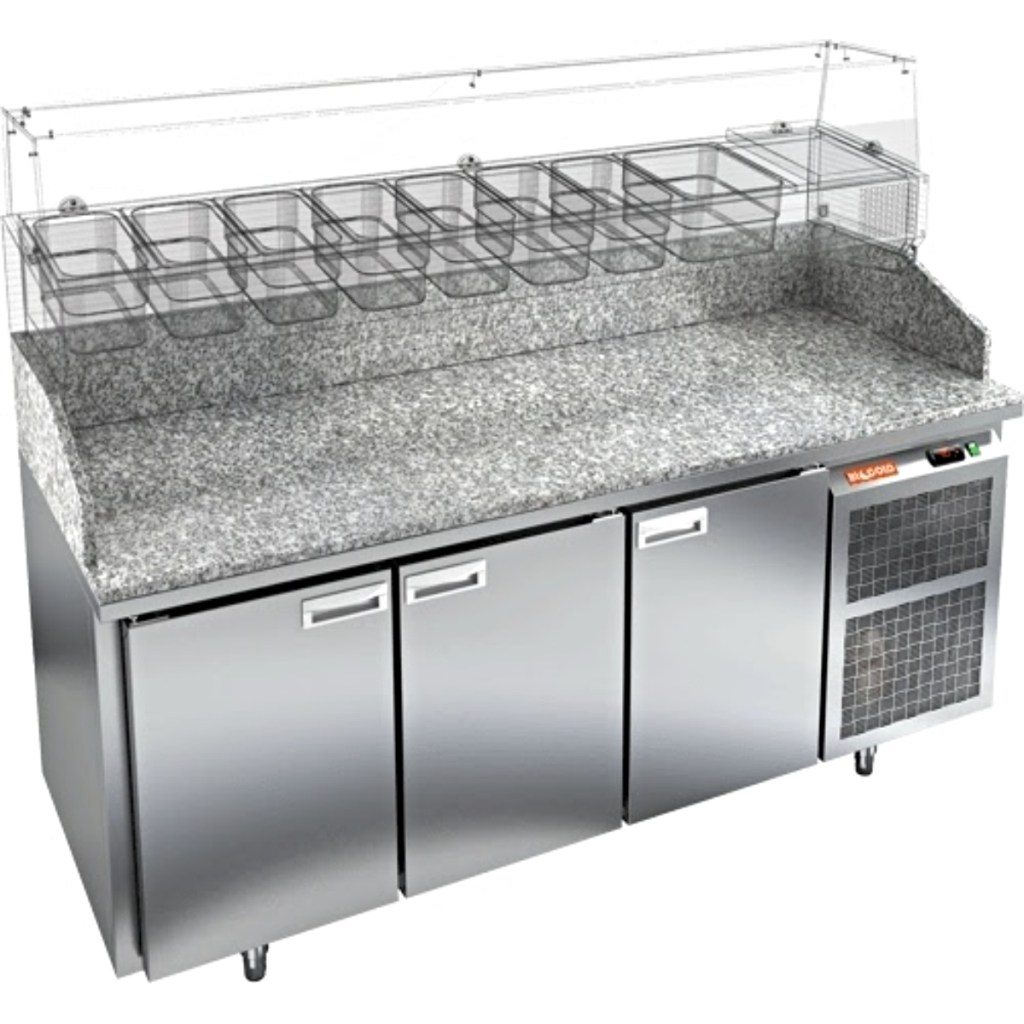 Стол холодильный для пиццы HiCold PZ3-111/GN З камень — профессиональное оборудование для предприятий общественного питания и торговли. Используется для раскатки теста, подготовки ингредиентов для пиццы, салатов и других блюд, а также для охлаждения и кратковременного хранения скоропортящихся продуктов и напитков. Совмещение рабочей поверхности с охлаждаемым объемом позволяет повару иметь все необходимое под рукой, что значительно ускоряет процесс приготовления.