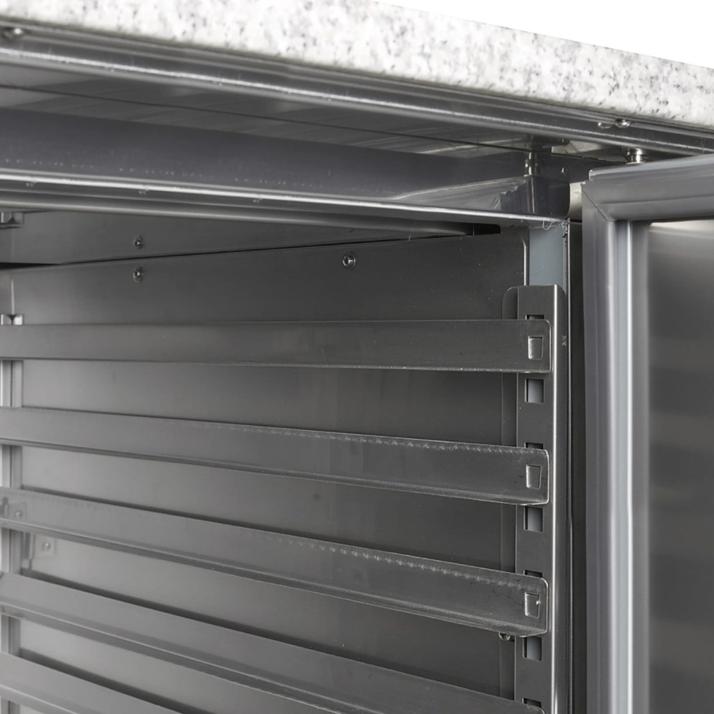 Каталог оборудования Холодильное оборудованиеСтолы охлаждаемыеСтолы холодильные для пиццыСтол холодильный для пиццы TEFCOLD PT1365 + VK33-140 Стол холодильный для пиццы TEFCOLD PT1365 + VK33-140 Код товара: 010-225 Поделиться: WhatsAppTelegram СравнитьДобавить в КПВ избранное 0 258 953 ₽ В корзину 0 шт Под заказСамовывоз сегодня бесплатно Взять в кредит Купить в лизинг Получить консультацию в WhatsApp Описание Характеристики Отзывы 0 Инструкции 2 Стол для пиццы TEFCOLD PT1365 — профессиональное оборудование, предназначенное для обработки ингредиентов, охлаждения и кратковременного хранения продуктов на предприятиях общественного питания и торговли. Корпус и внутренняя обшивка выполнены из нержавеющей стали AISI 304, обеспечивая долговечность, гигиеничность и простоту ухода. Особенности модели: Динамическое охлаждение — равномерное распределение температуры по всему объёму Автоматическое размораживание — поддержание стабильной работы без образования наледи Электронный термостат и градусник — точное регулирование температуры Хладагент R600a, подзарядка — 0,11 кг Самозакрывающиеся двери — герметичность и сохранение холода 3 полки — удобная организация внутреннего пространства Регулируемые по высоте ножки — устойчивость на неровных поверхностях Климатический класс 4 — работа при температуре окружающей среды до +30 °C Полезный объём: 368 л Внутренние размеры: 1295×515×500 мм Энергопотребление: 3 кВт/сутки Уровень шума: 42 дБ TEFCOLD PT1365 — надёжный и функциональный холодильный стол для профессиональных кухонь, пиццерий и предприятий общественного питания. Модель сочетает удобную рабочую поверхность, вместительное охлаждаемое пространство и современную систему управления температурой, обеспечивая сохранность ингредиентов и комфорт в работе. Изображение товара, представленного на фото, может отличаться от его фактического вида. Показать все Габаритные размеры1365×700×1457 ммДиапазон рабочей температурыот +2 до +10 °CРасположение агрегатаНижнее Материал столешницыГранитная Тип столаС дверьми Тип двериГлухая Общий объем400 лПолезный объем368 лТип гастроемкостейGN1/1 Количество дверей3 штКлиматический класс4 Напряжение220 ВРасход электроэнергии в сутки3,15 кВт/сутТип охлажденияДинамическое Тип оттайкиАвтоматическая ХладагентR600a Уровень шума42 дБГабариты в упаковке1440×770×1510 ммВес нетто210 кгВес брутто235 кгБрендTefcold Оставить отзыв Еще никто не оставил отзыв на этот товар Брошюра на TEFCOLD PT1365-I.pdfИнструкция на TEFCOLD PT1365-I.pdf Похожие товары Перейти в каталог Под заказ 197 749 ₽ Стол холодильный для пиццы TEFCOLD PT930 Под заказ 164 643 ₽ Стол холодильный для пиццы Abat СХС-80-01П 2 двери нерж. Под заказ 324 250 ₽ Стол холодильный для пиццы TEFCOLD PT1200 + VK38-150 С этим товаром покупают Под заказ 201 448 ₽ Шкаф морозильный Abat ШХн-1,4-02 Ранее просмотрено В наличии 55 891 ₽ Шкаф холодильный TEFCOLD BC60